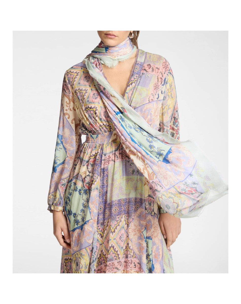 Modal scarf with print. The fabric texture enhances the graphic design. Perfect with blazer and shirt for the office or with sweater and jacket for leisure time, ideal for a contemporary style.