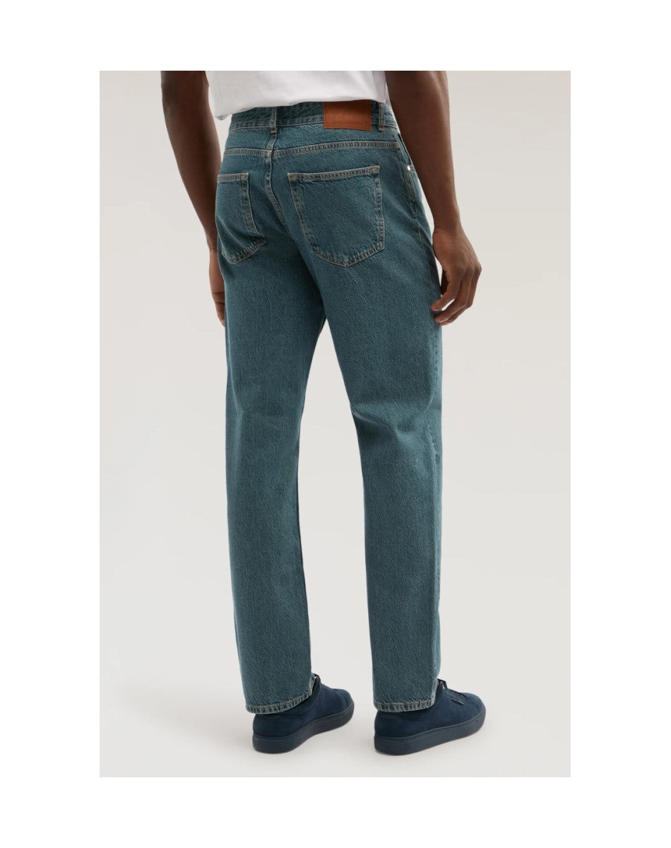 Five-pocket denim has always been part of Trussardi's style codes: this is why the new 390 fit was born, dynamic and contemporary, which revisits the classic straight fit. Made of authentic 100% cotton denim with a vintage stonewashed effect, it is enhanced by leather trim and a greyhound embroidery on the fifth pocket. Personalised details such as rivets and buttons complete the design. Perfect for casual yet refined looks, it easily pairs with t-shirts and shirts for a versatile and modern style. Denim evolves over time and washes: it can slightly adapt in shape and acquire unique nuances, telling the story of the person wearing it.
