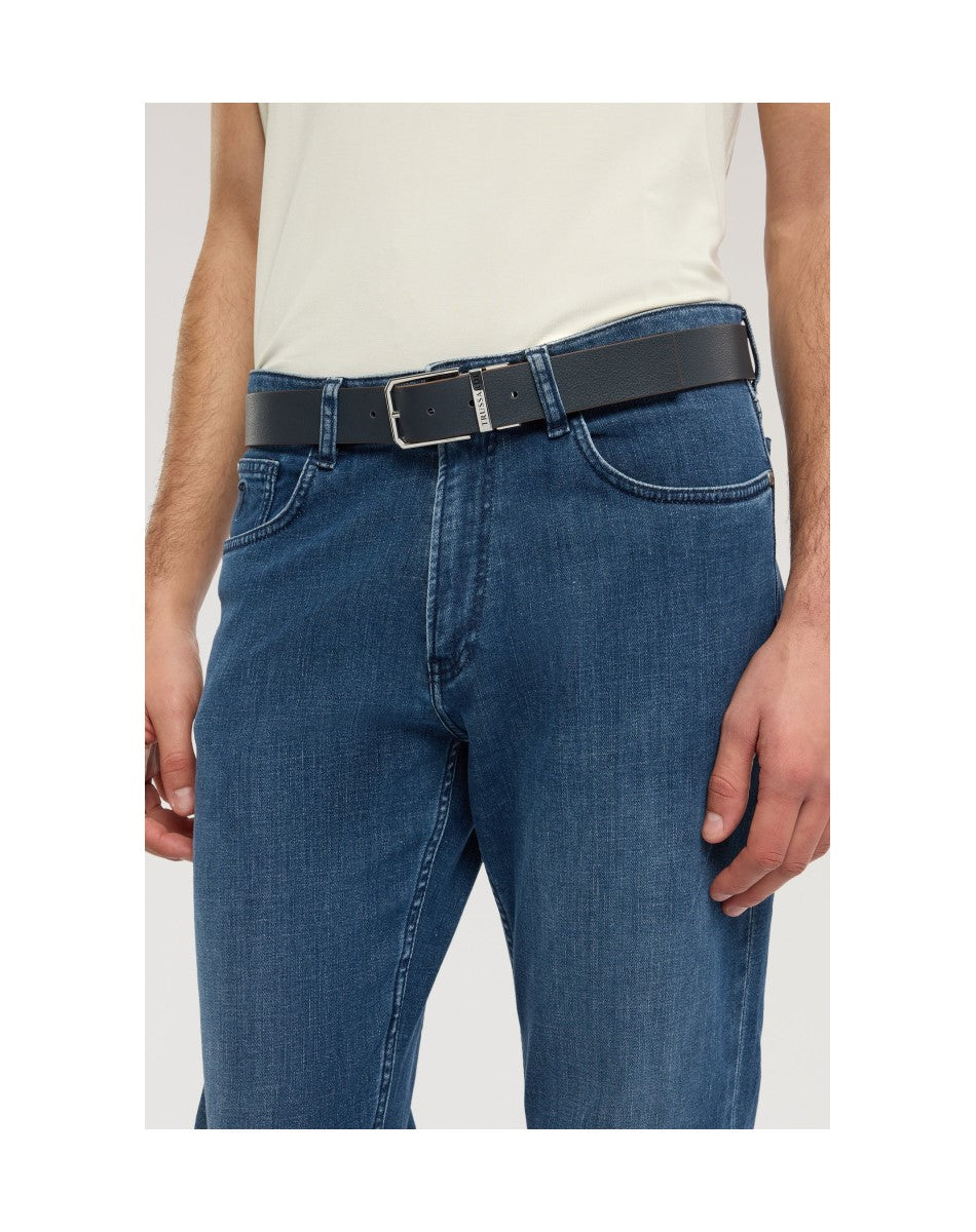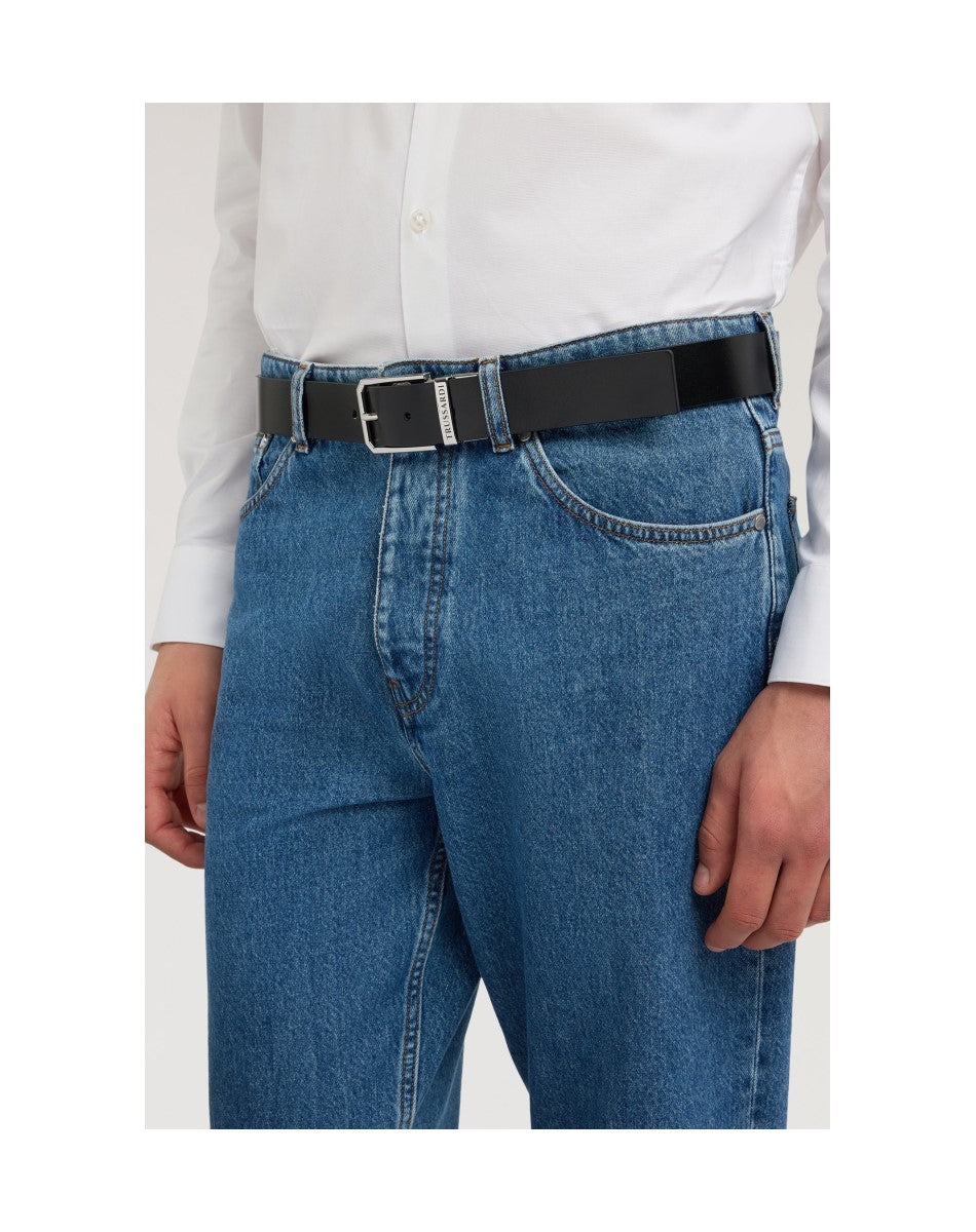 Cintura reversibile in vera pelle che incarna l'essenza del design Trussardi: versatilità e raffinatezza. La fibbia con logo aggiunge un dettaglio elegante, mentre la reversibilità offre due opzioni di stile in un unico accessorio. Perfetta per il professionista dinamico che apprezza l'artigianalità italiana, si adatta con disinvoltura a un abbigliamento formale da ufficio o a un look più casual per il weekend. Un accessorio essenziale che unisce funzionalità e stile, riflettendo la tradizione di Trussardi nella lavorazione artigianale della pelle.
