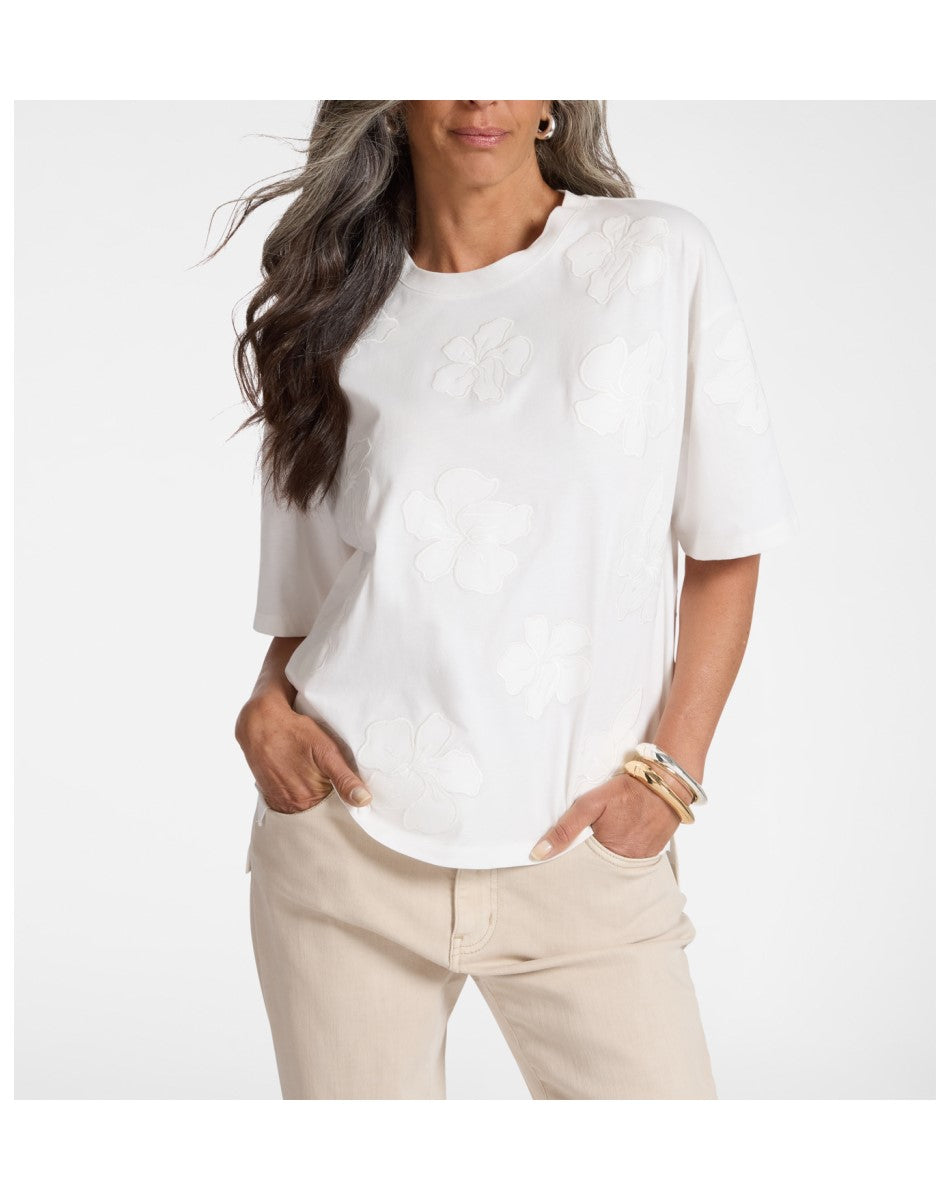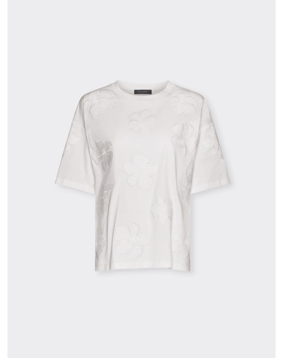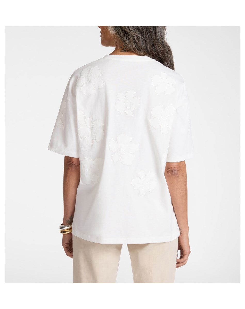 T-shirt in jersey di cotone con ricamo floreale tono su tono dal design raffinato. Ideale per uno stile contemporaneo.
