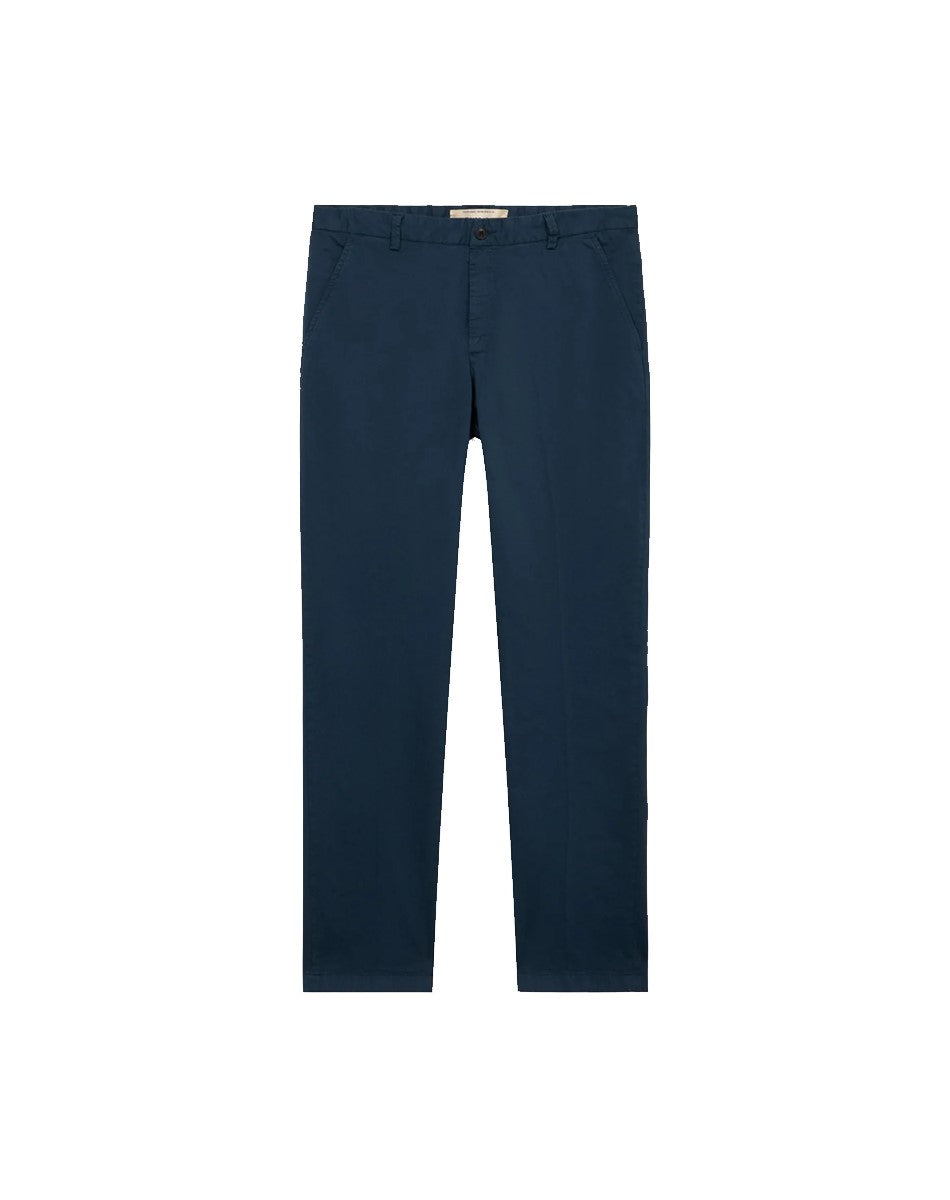 I pantaloni chino slim fit Aviator 301 ridefiniscono l'eleganza maschile con linee pulite e raffinata essenzialità. Realizzato in gabardine leggero, questo modello ibrido unisce il comfort dei chino alla struttura dei pantaloni formali. La silhouette slim fit abbraccia naturalmente la figura, mentre il ricamo del levriero sulla tasca posteriore aggiunge un dettaglio distintivo. Perfetto per look smart casual e formali, si abbina facilmente a camicie, polo e maglieria per outfit versatili da mattina a sera.