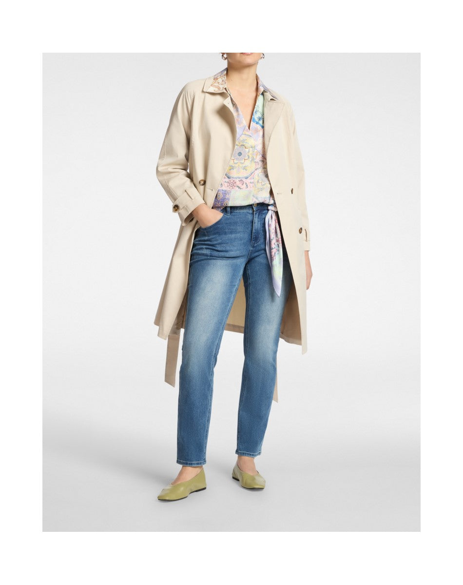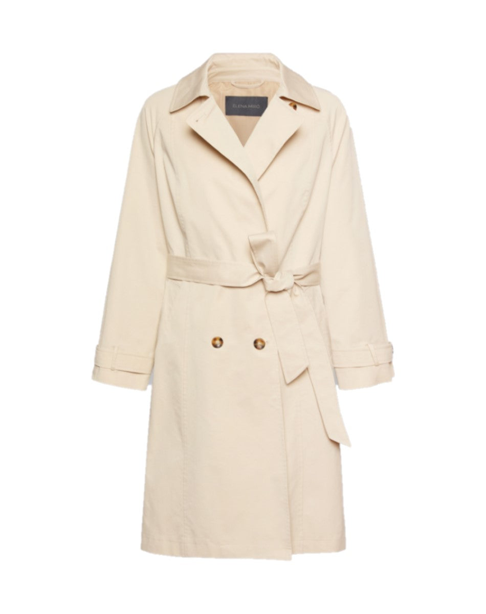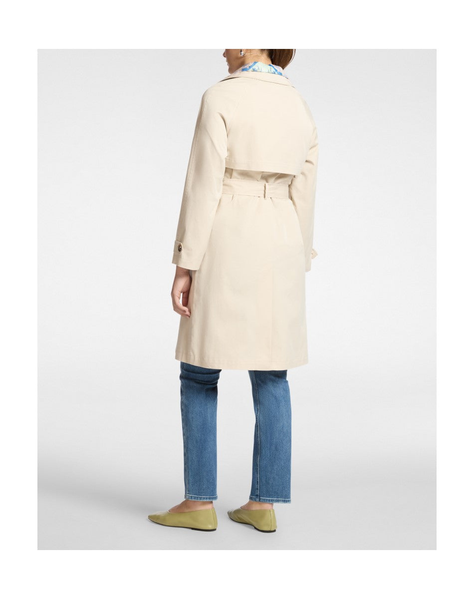 Trench in gabardine misto cotone dal taglio classico con chiusura doppiopetto e cintura in vita. Bottoni effetto corno e spalline strutturate completano il design sartoriale. Perfetto sopra un abito per l'ufficio o con jeans e maglione per ogni occasione.