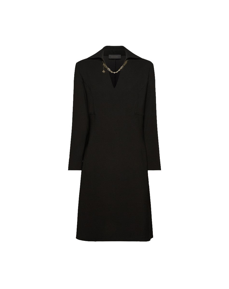 Dress made of stretch crêpe fabric enhanced by the Monogram accessory, which can also be used as a bracelet.