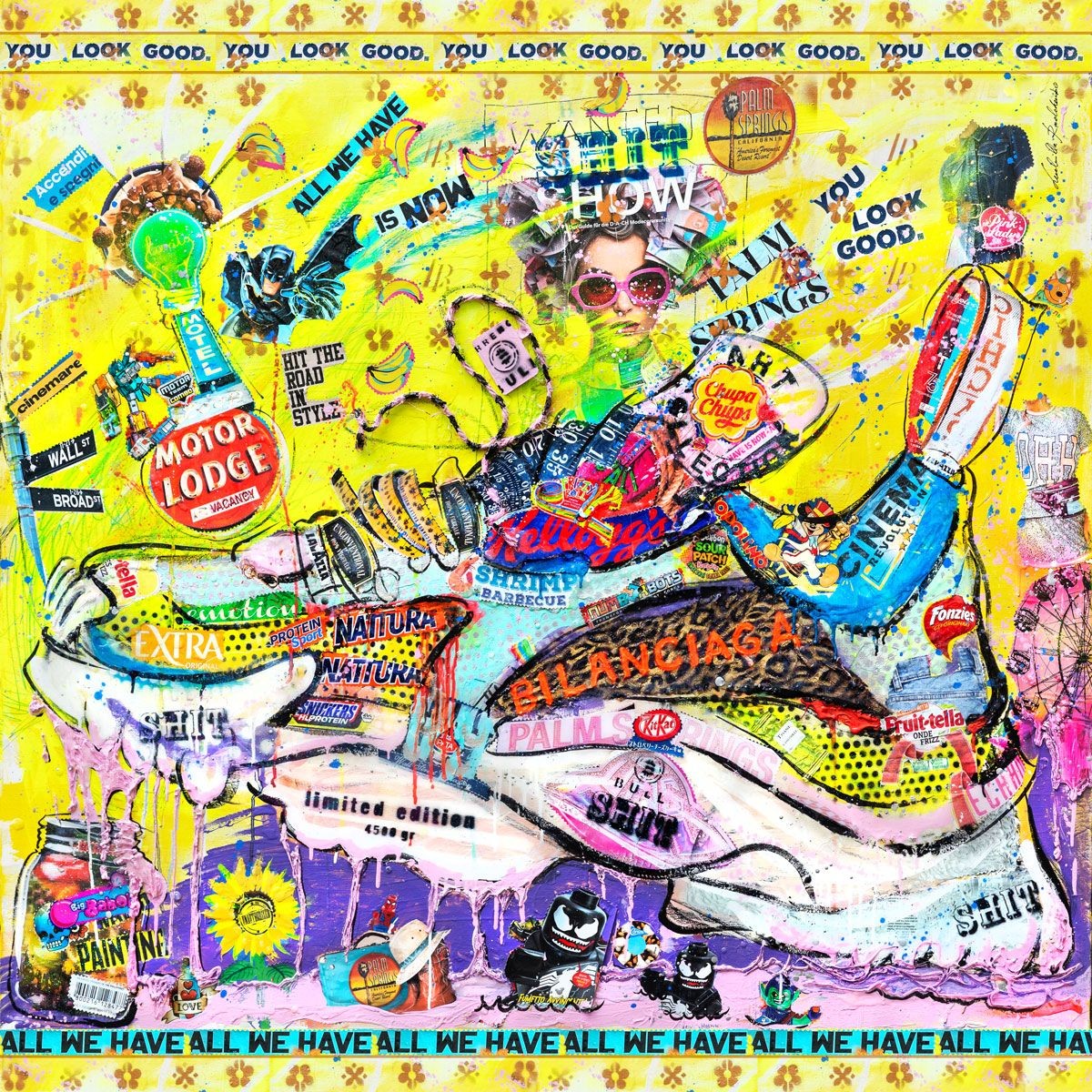 The rectangular scarf "BILANCIAGA," from the scarf collection signed by Ludmilla Radchenko, measures 140x140 cm and is a scarf made of cashmere (40%) and natural modal fiber (40%), 20% silk. This scarf is signed Ludmilla Radchenko and reproduces the eponymous artwork. Multicolored scarf with a pattern, completely made in Italy for all casual and formal occasions.