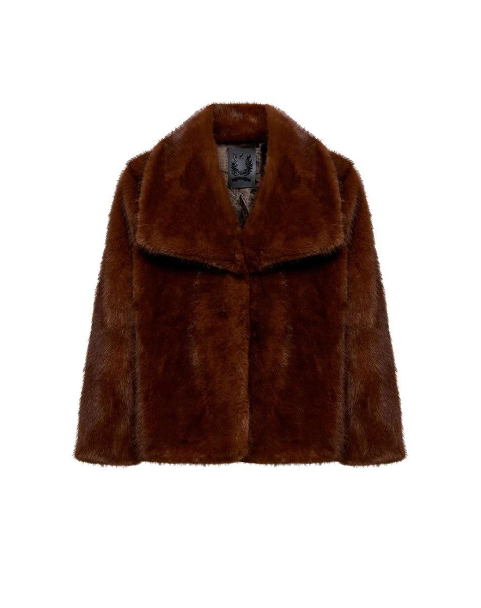 Elegance and style meet in this short coat with a sophisticated design, embellished with a large fur effect neck. The clean silhouette and the well -kept details make it perfect to complete any outfit with a touch of class and heat.