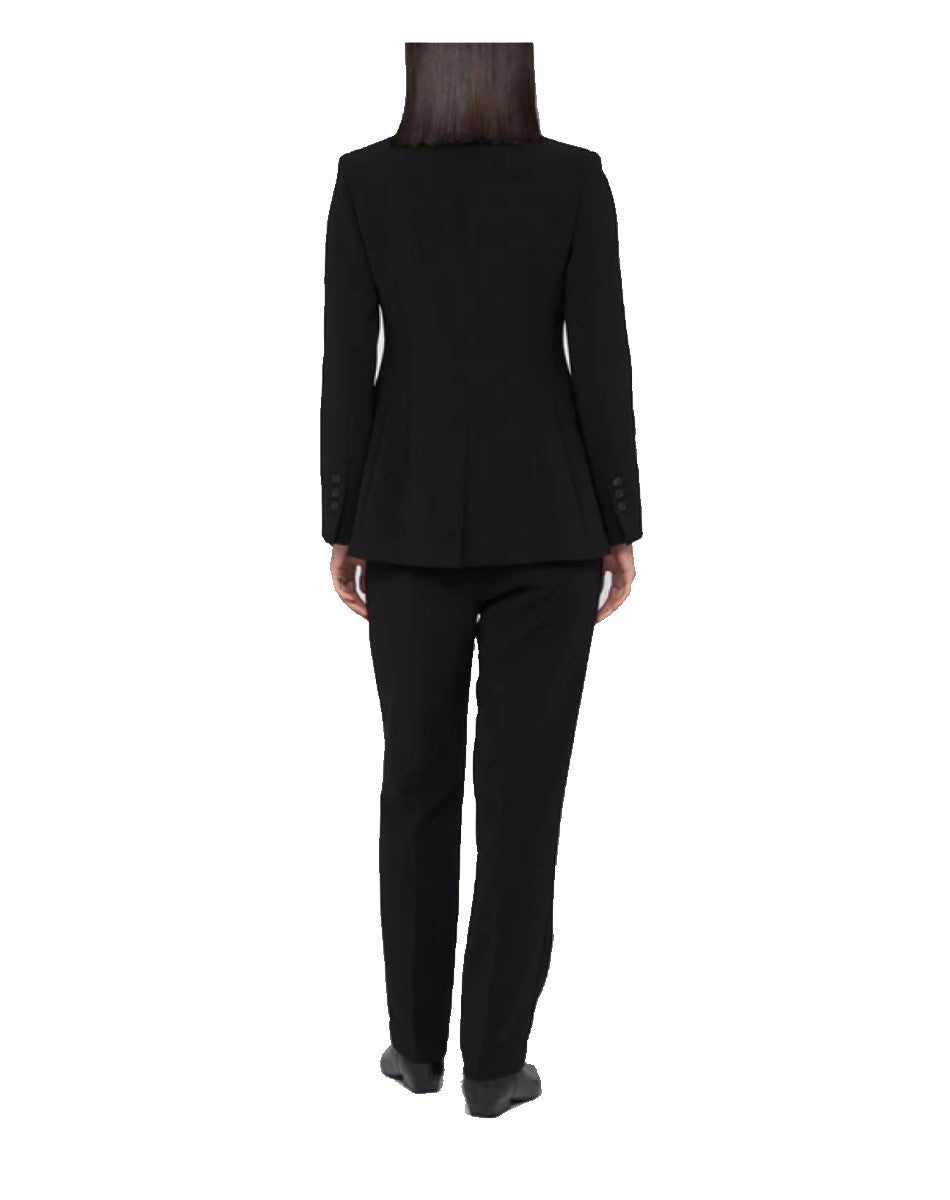 The single-breasted cady blazer embodies Trussardi's essence of sophisticated minimalism. The darts at the sides create an enveloping, feminine silhouette, whilst the sleek fit elegantly enhances the figure. Versatile and timeless, it transitions seamlessly from office to evening events. Pair it with matching trousers for an impeccable formal look, or with jeans and a t-shirt for casual chic styling. An iconic piece that combines style and functionality, reflecting the brand's understated refinement.