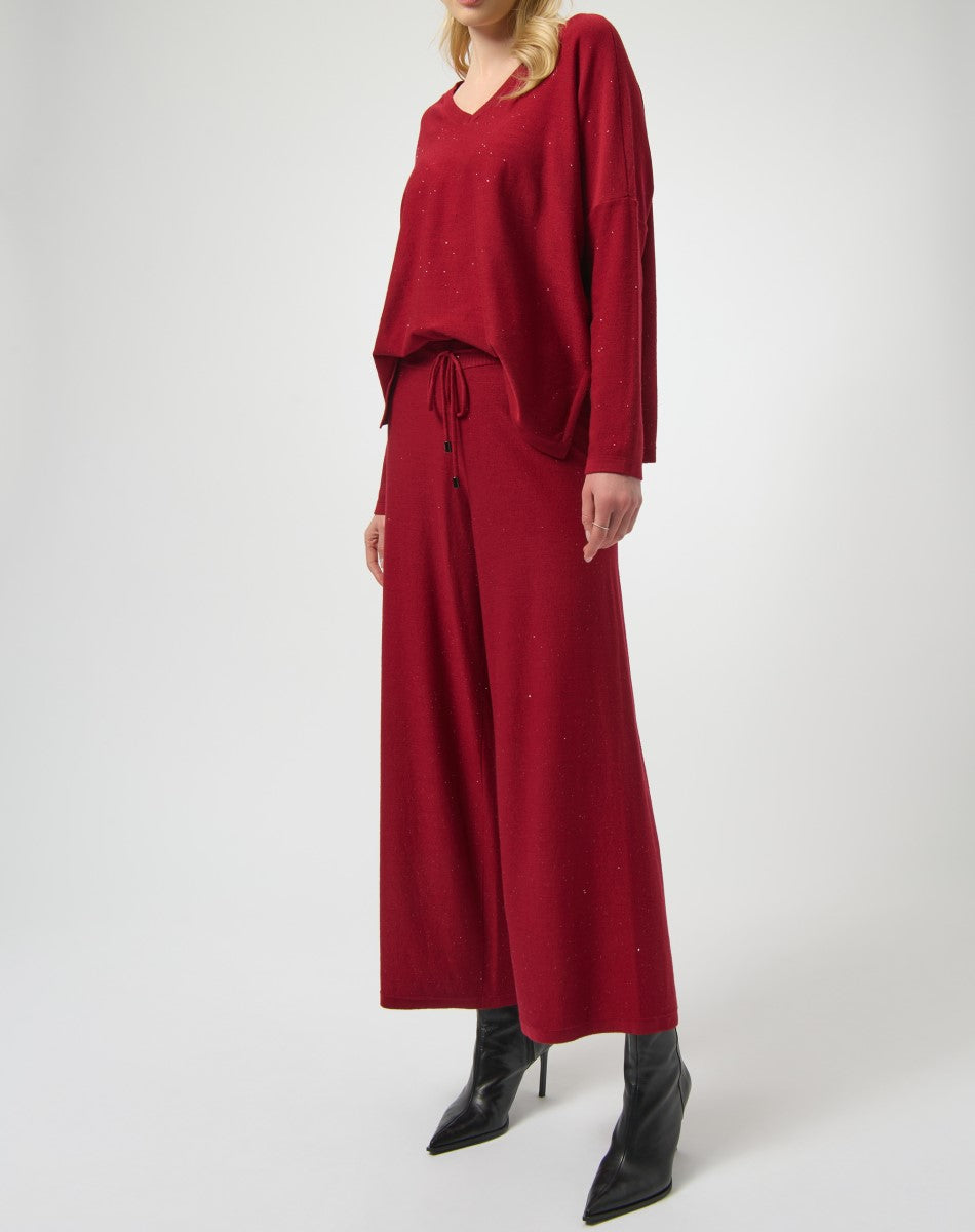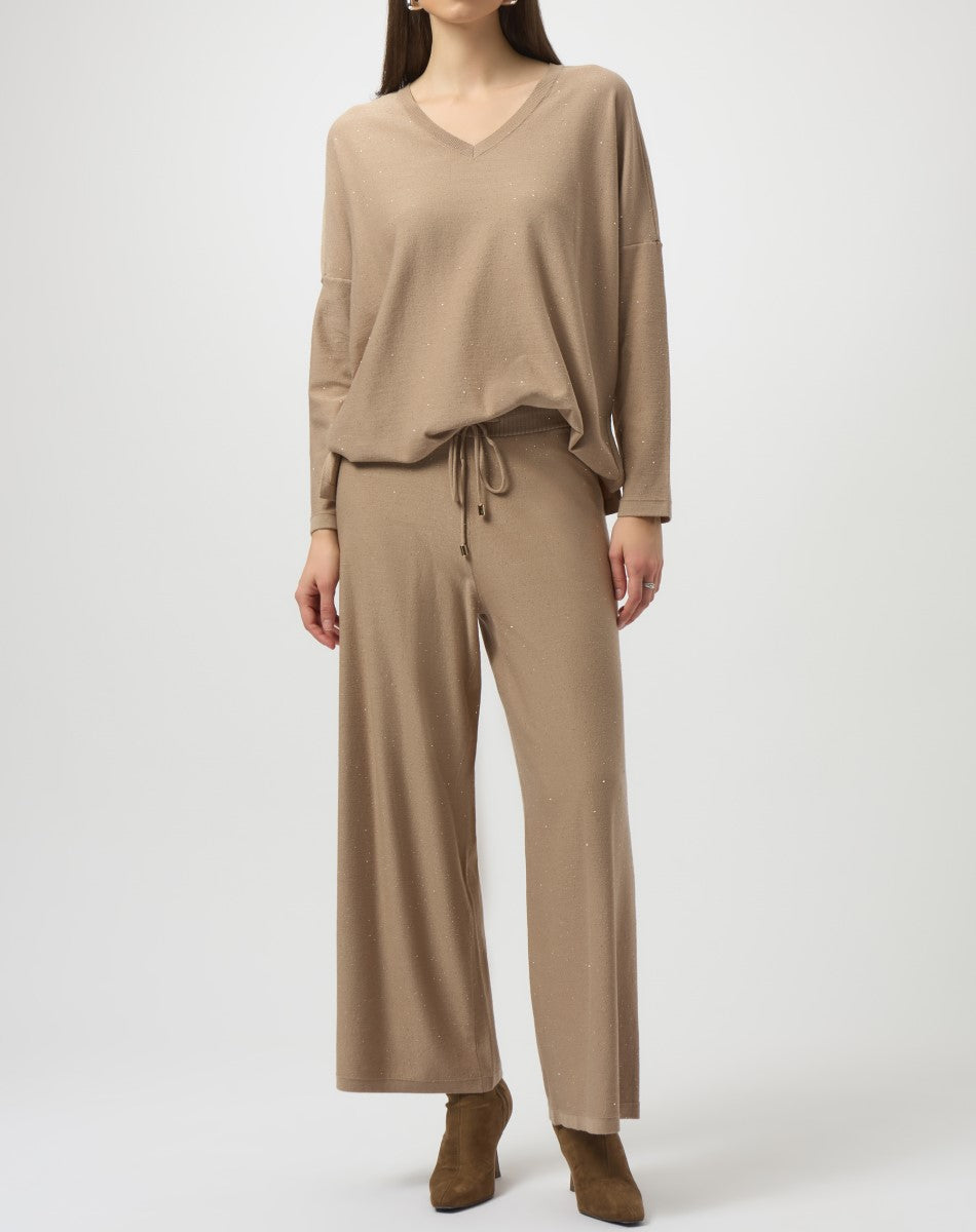 Hip-length, relaxed-fit knitwear featured by a chic v-neck adorned with jewel embellishments, perfect for casual, office, or home-lounge settings. The plain pattern and long, straight sleeves create a versatile, stylish look. Ideal for both casual and chic occasions, this pullover seamlessly blends comfort and sophistication.