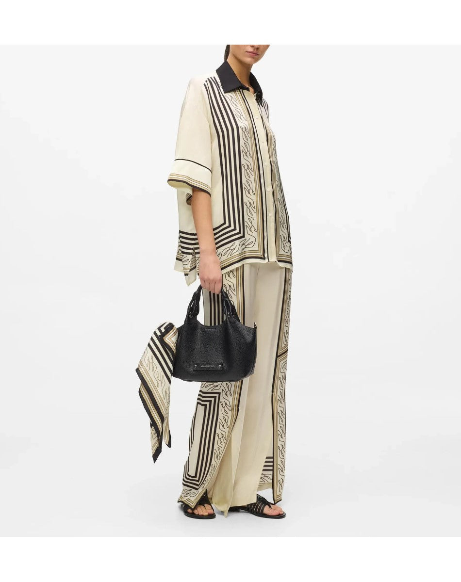 A fluid, wide-leg silhouette with split front hems offers effortless movement in these pajama pants. The elastic waistband ensures comfort, while the striking Autograph scarf print adds eye-catching impact.