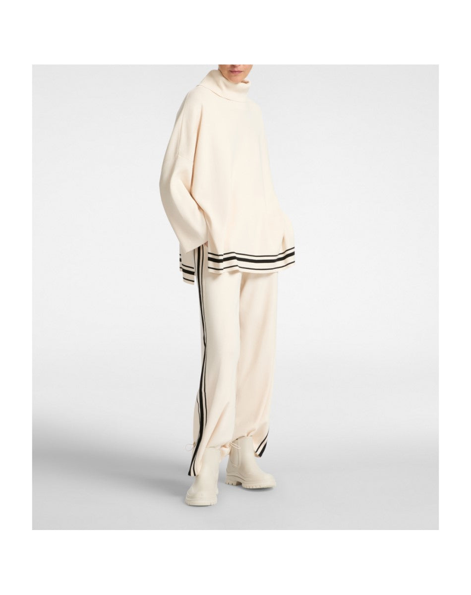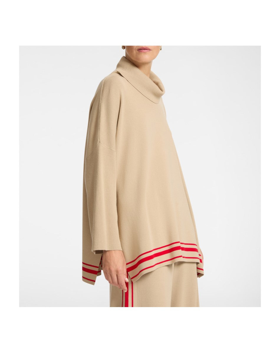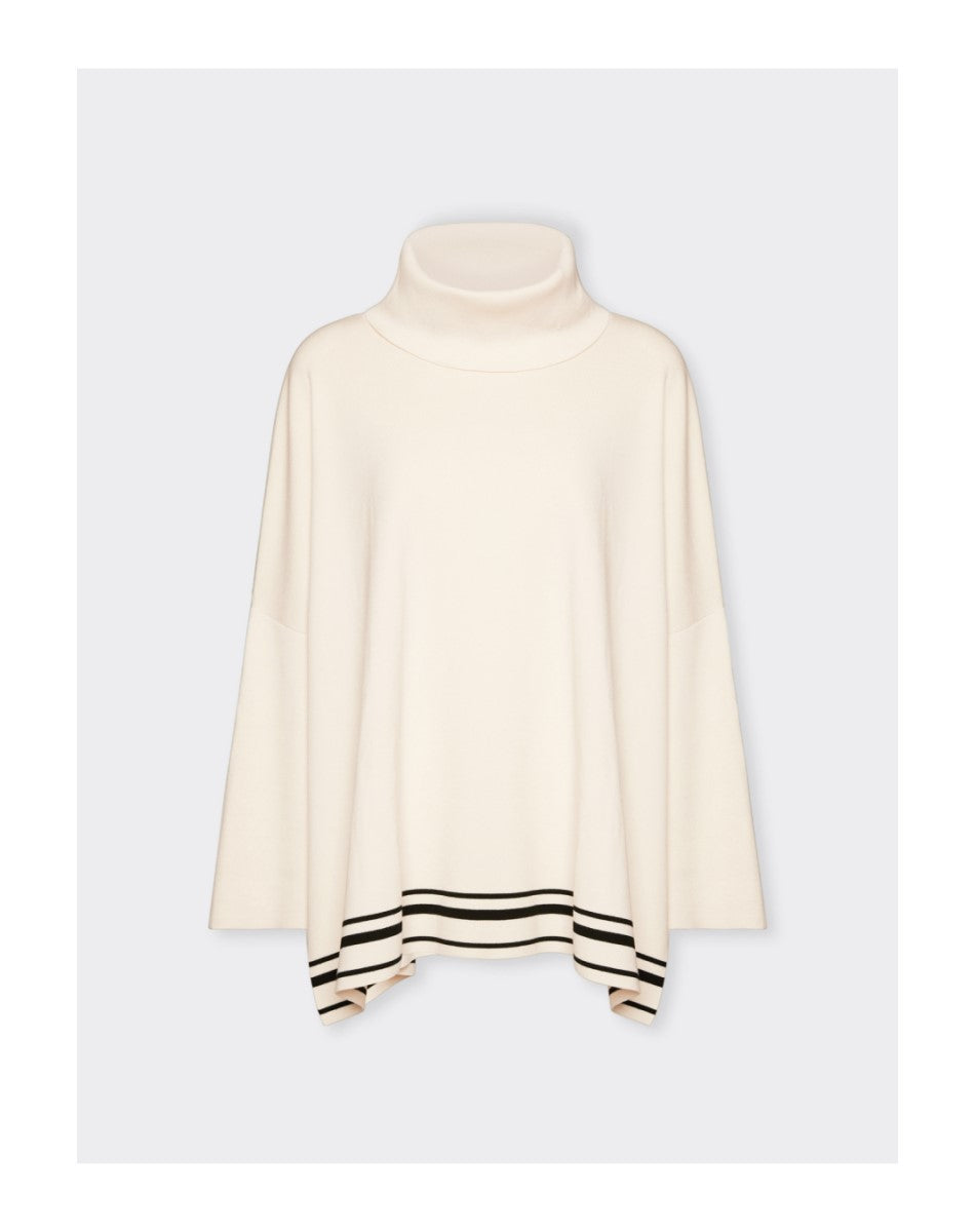 Wide-cut closed pullover with stripes at the bottom, in viscose yarn.