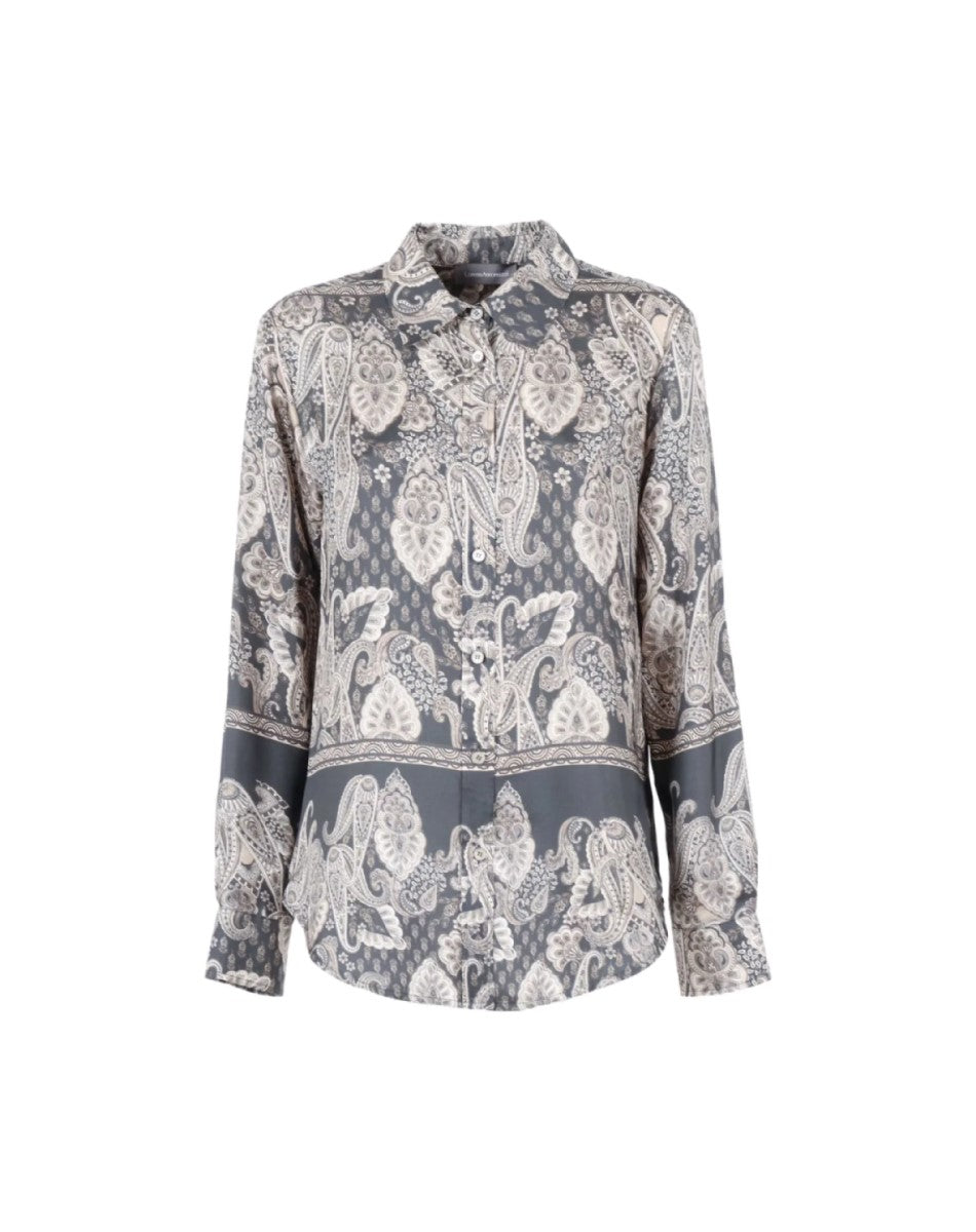 Adorned with a romantic, exotic-inspired print, this shirt captivates with its vibrant Paisley motif, a tribute to the maison’s textile heritage. Rendered in military green, brown, and travertine accents, it effortlessly transitions from summer to winter, pairing seamlessly with both warm and cool palettes.