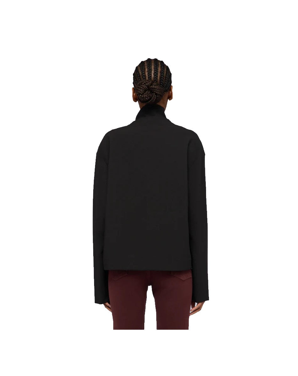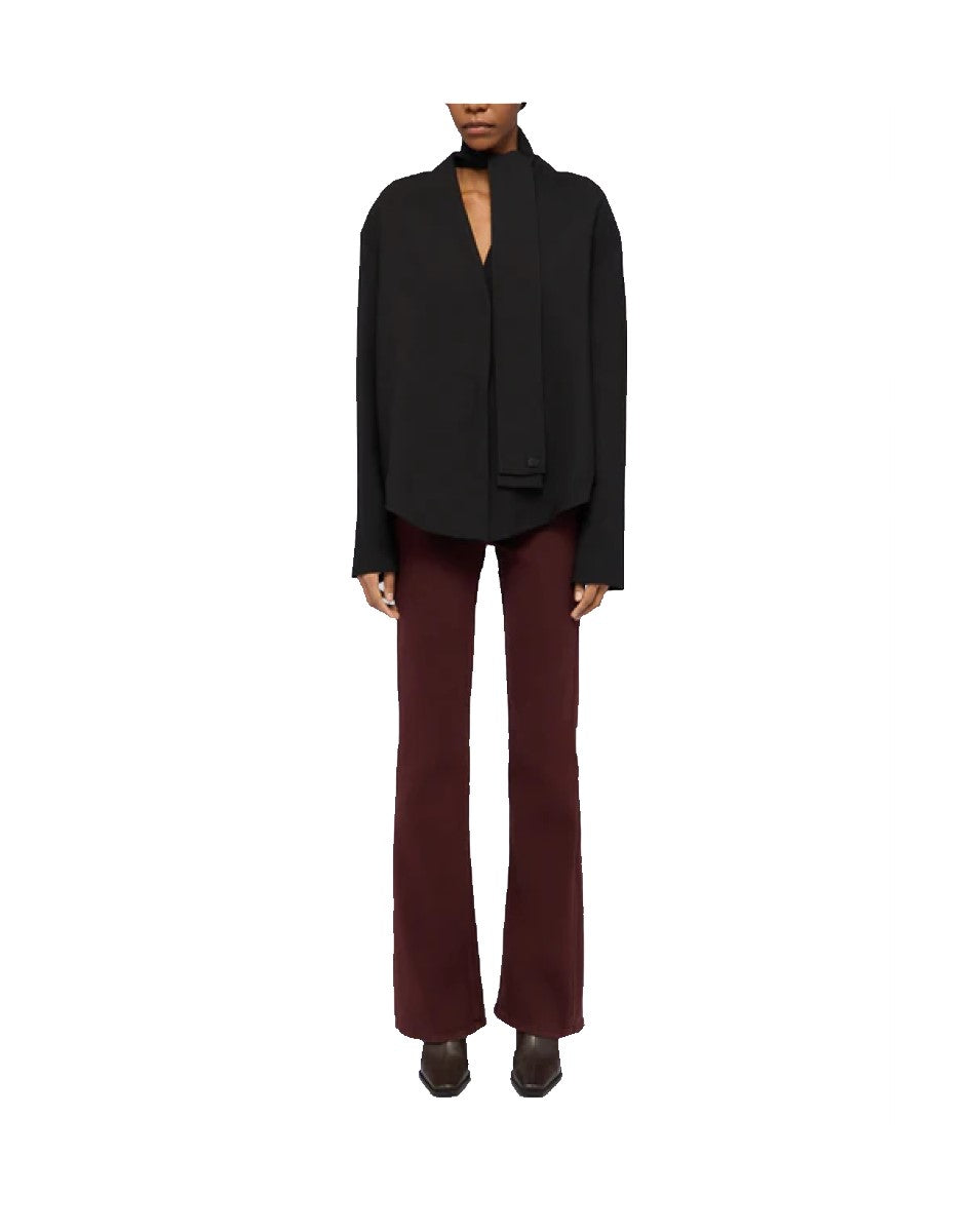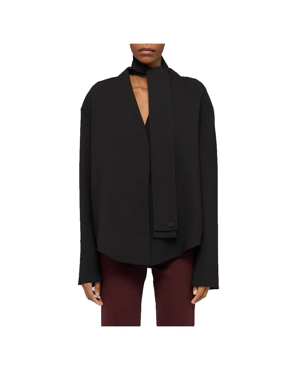 Timeless style meets practicality in this refined shirt jacket with a relaxed fit. The integrated viscose twill scarf adds an element of elegance, whilst hidden snap buttons offer a clean, contemporary closure. Perfect for the dynamic woman who appreciates sophisticated minimalism, it adapts to various occasions, from work to evening drinks with friends. Versatile and always impeccable, it pairs perfectly with tailored trousers or jeans for a look that reflects Trussardi's values: democratic, bold and culturally relevant.