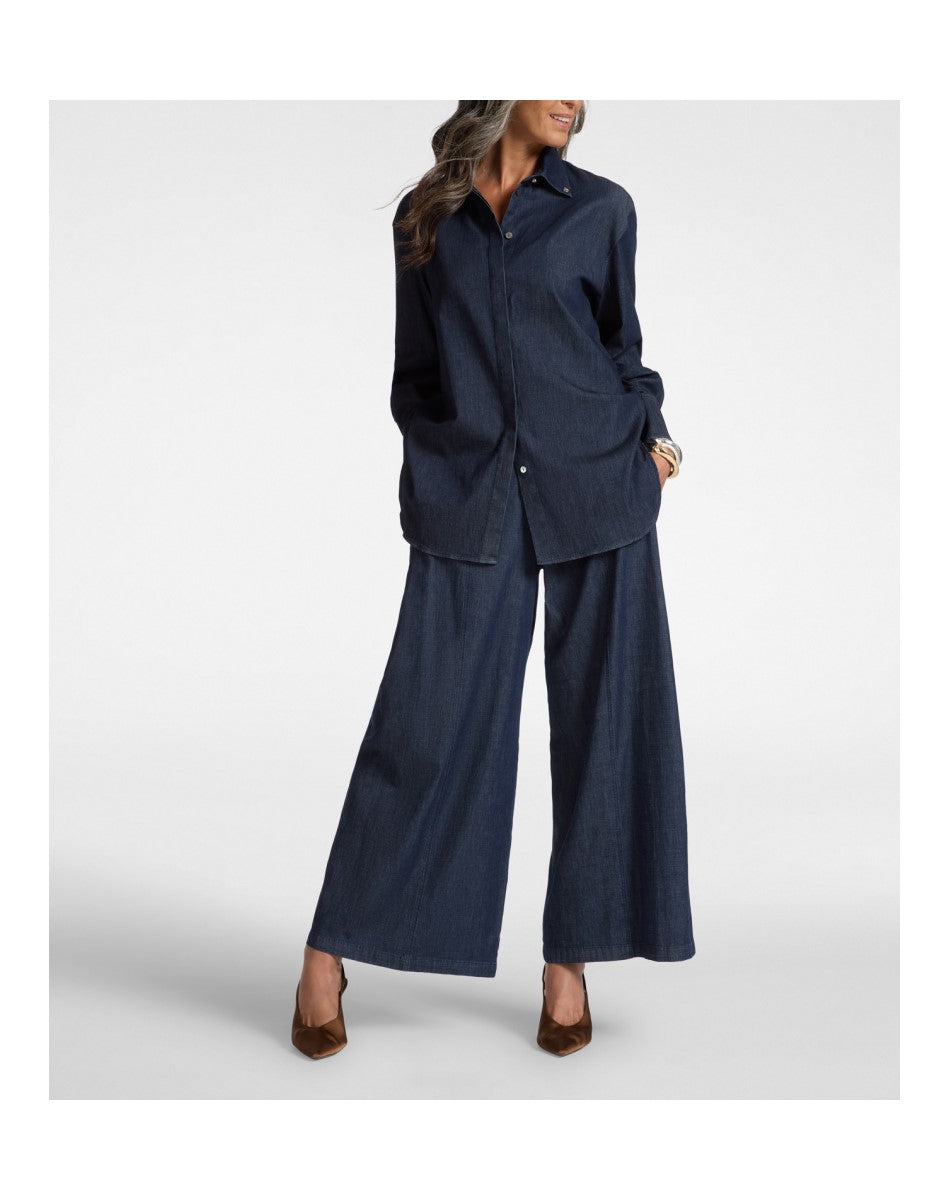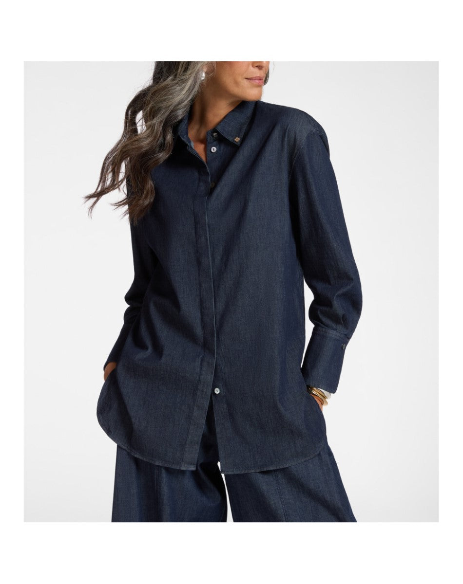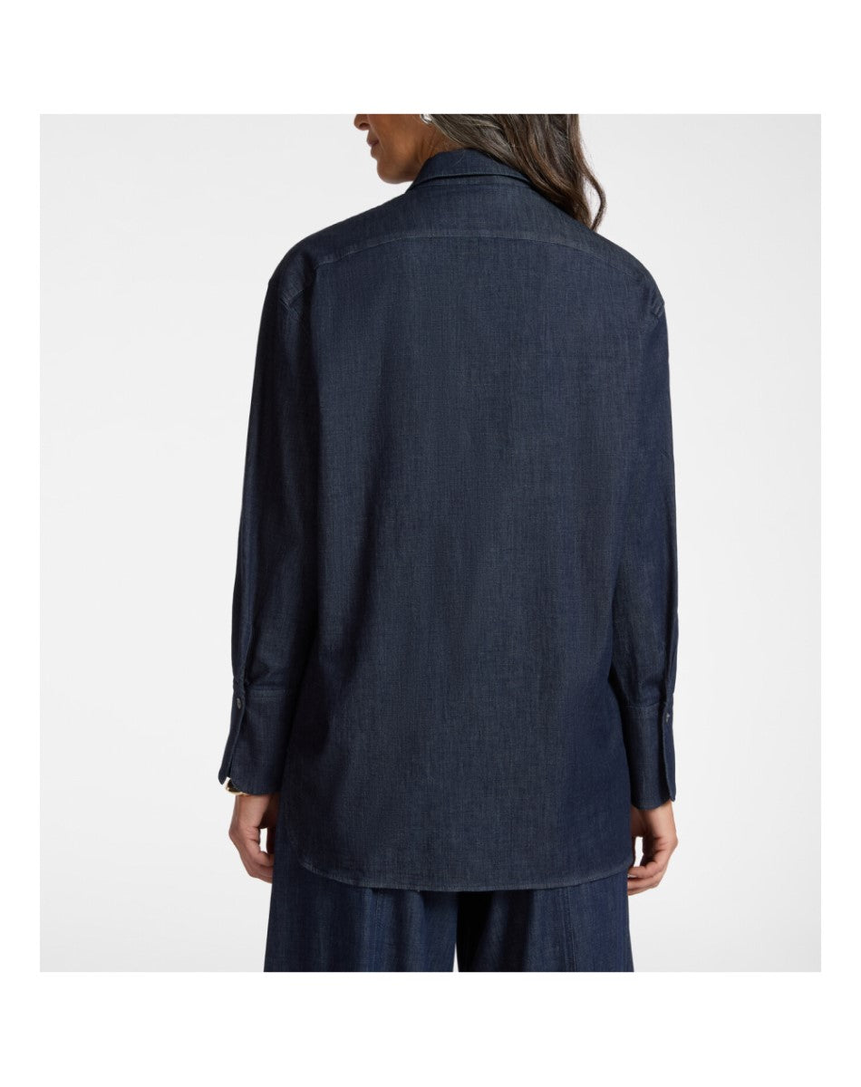 Cotton blend chambray shirt with a relaxed fit and washed effect. Versatile with jeans for the weekend or tailored trousers, ideal for a contemporary style.